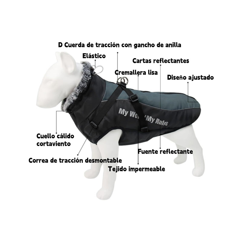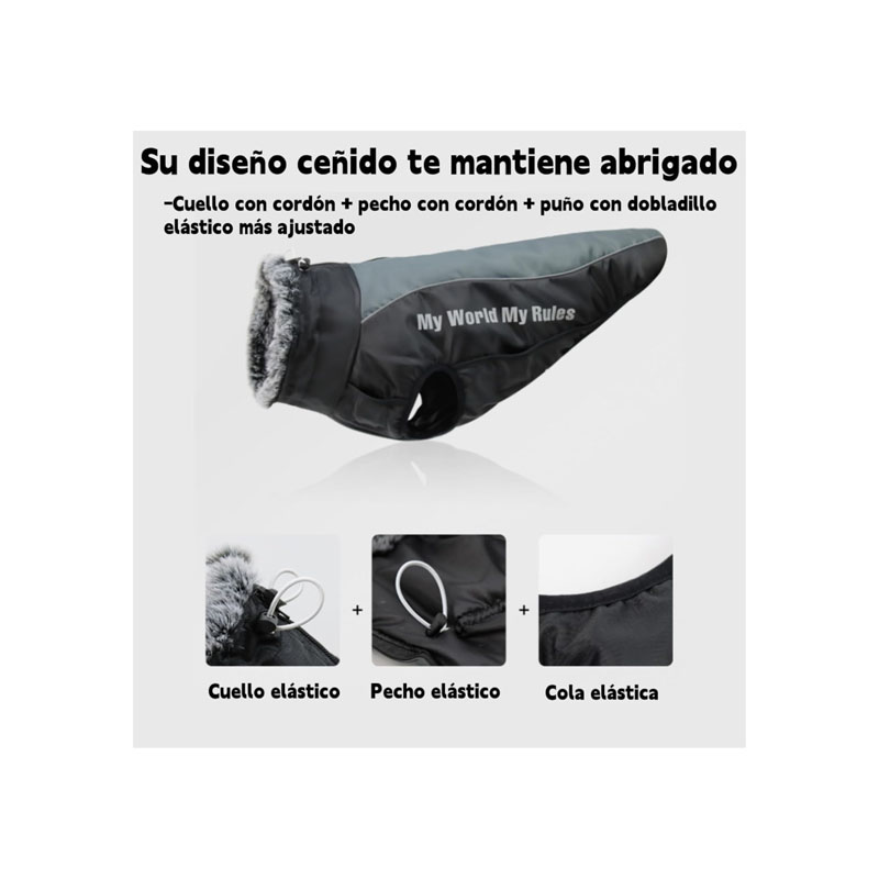 Esta chaqueta de abrigo para perros para clima frío está hecha de tela oxford impermeable y forro de seda de alta calidad, que no sólo es impermeable sino también a prueba de viento. Este diseño bien pensado le permite hacer los ajustes apropiados de acuerdo al tamaño de su perro, evitando que el viento frío sople dentro de la ropa y manteniendo efectivamente la temperatura corporal de su perro, permitiéndole soportar el frío. El cuello alto plegable de felpa evita eficazmente el viento y mantiene a su perro caliente, y también hace que su perro se sienta más cómodo.