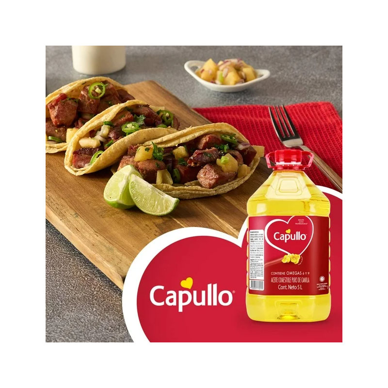 Con aceite Capullo 100 porciento puro de canola, disfruta el sabor íntegro de tus alimentos, pues resiste altas temperaturas. Un aceite comestible que ofrece versatilidad para tus platillos y que, gracias a la pureza de sus ingredientes, te ayuda a conservar el sazón de tus platillos favoritos sin mayor complicación.