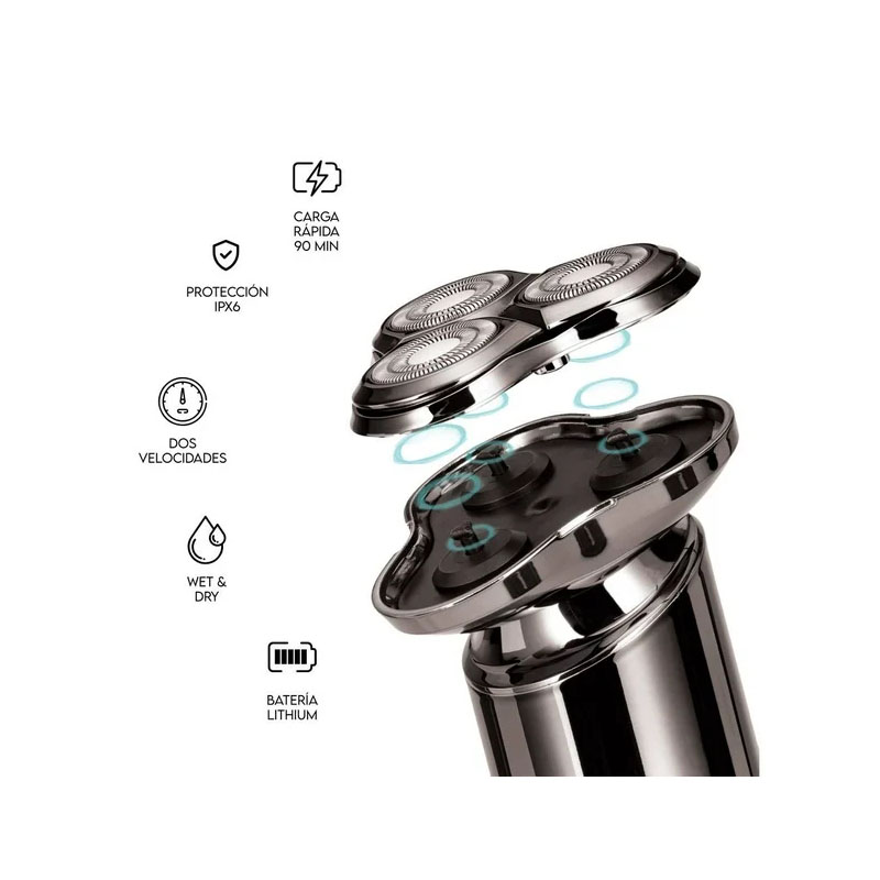 Rasuradora eléctrica Timco para uso en húmedo y seco, ideal para llevar a todas partes. Cuenta con las mejores baterías de Lithium con tecnología de carga rápida. La máquina de afeitar carga 1 hr y te ofrece 90 minutos de uso.
