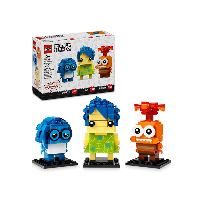 Sorprende a tu peque o a un fan de la película con el juego LEGO® BrickHeadz™ ǀ Disney y Pixar Alegría, Tristeza y Ansiedad (40749), formado por fabulosos juguetes de construcción para fans a partir de 10 años. Basado en Del revés 2, de Disney y Pixar, este set de construcción proporciona a los niños la oportunidad de crear versiones BrickHeadz de 3 personajes de heroínas: Alegría, Tristeza y Ansiedad. Una vez terminadas, los peques pueden usar las vistosas figuras construidas con ladrillos para interpretar escenas de la película o exponerlas con orgullo en su habitación.
