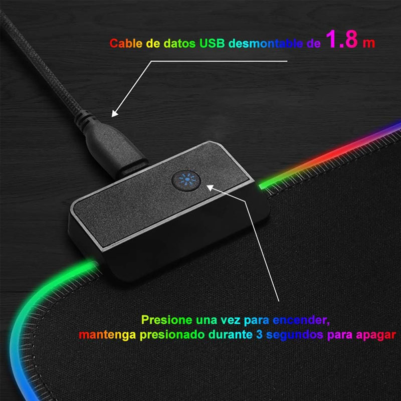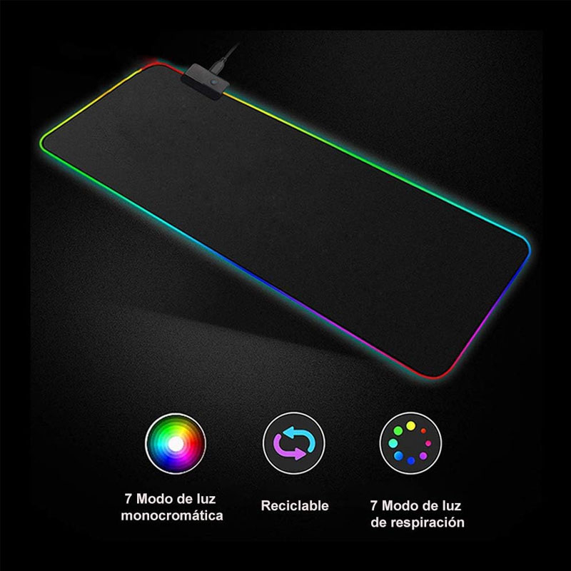 Esta alfombrilla RGB es de 300x800x4mm, tamaño suficiente para poner encima el teclado y el ratón de juegos al mismo tiempo, manteniendo ordenado el escritorio