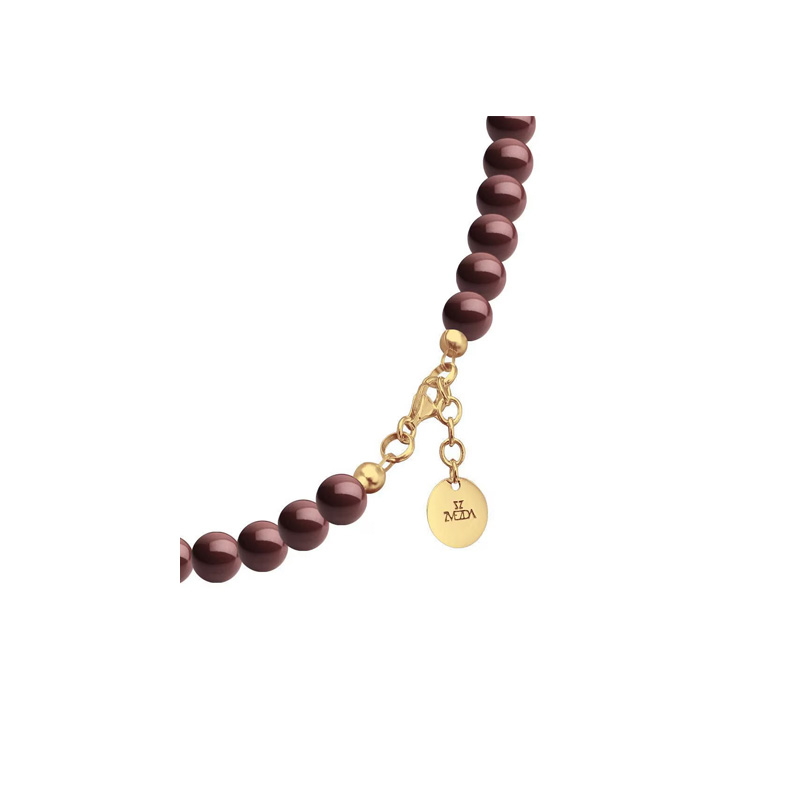 Elegante diseño de perlas de cristal de 8mm de diámetro colores disponibles Cream, Peach, Lavander, Rose Gold, Light Blue, Rosaline, Black o Bordeux, pendientes de poste, pulsera ajustable y collar de 45cm de largo mas 3cm de extensión, elaborado por artesanos mexicanos con perlas de cristal Austriaco y chapa de oro de 18k.
