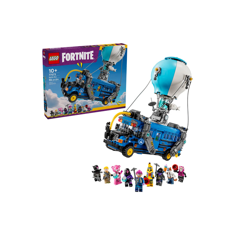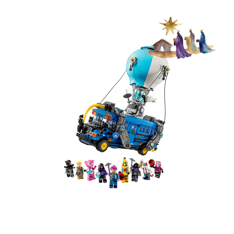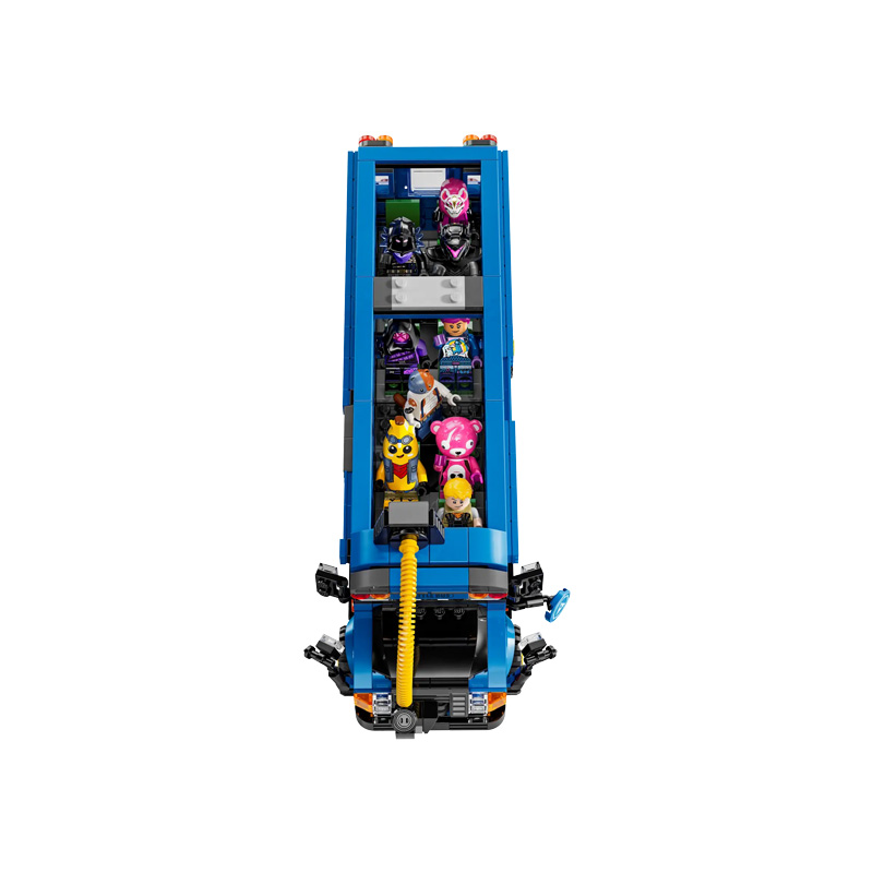 Los fans viajan hacia el apasionante mundo de LEGO Fortnite mientras construyen el autobús, equipado con ruedas que giran y techo desmontable, y el globo aerostático, reconocible al instante. ¡Pero eso es solo el principio! Una vez terminado el bus, les encantará descubrir los emblemáticos accesorios, como un sorbete, un lanzaventosas, picos y un zumo de subidón, así como las 9 minifiguras de icónicos trajes de Fortnite. Para dar vida a la aventura, podrán sentarlas en el vehículo e interpretar historias.