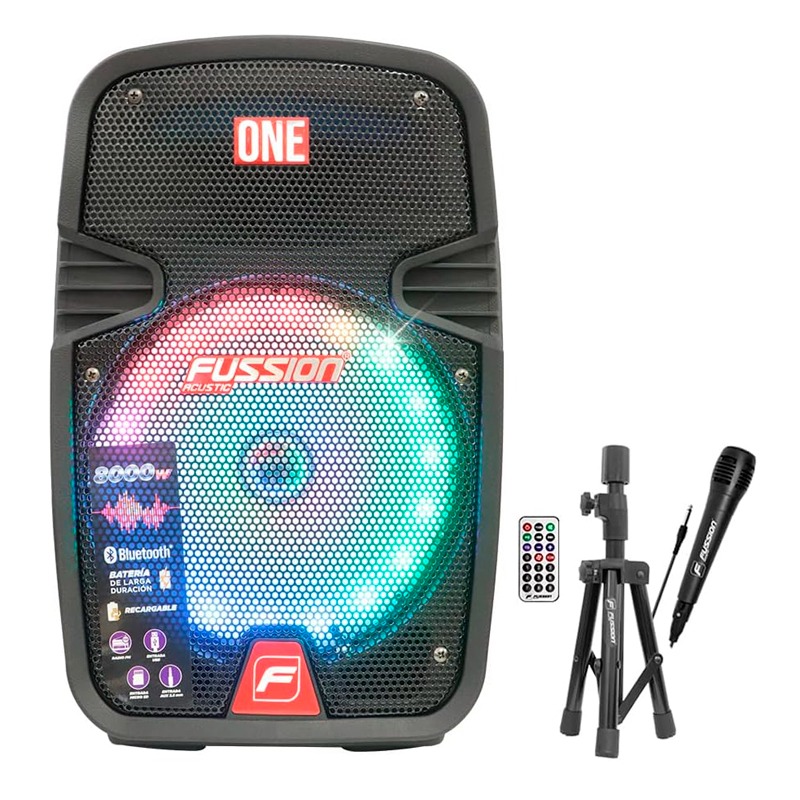 Bafle Recargable 8 pulgadas Fussion con tripié y micrófono Bluetooth Bocina Audio Pro con aro de luz LED Multicolor