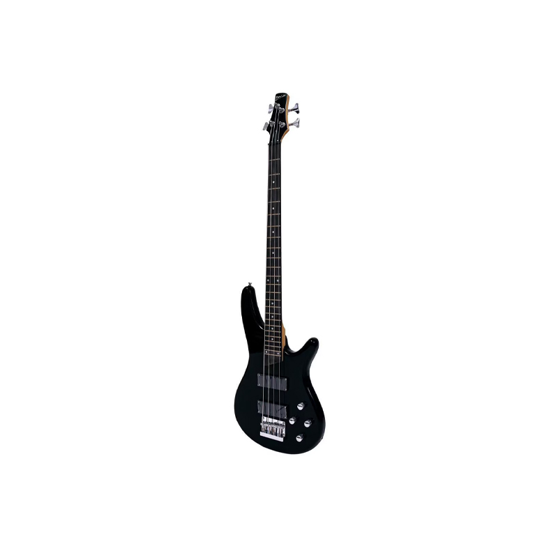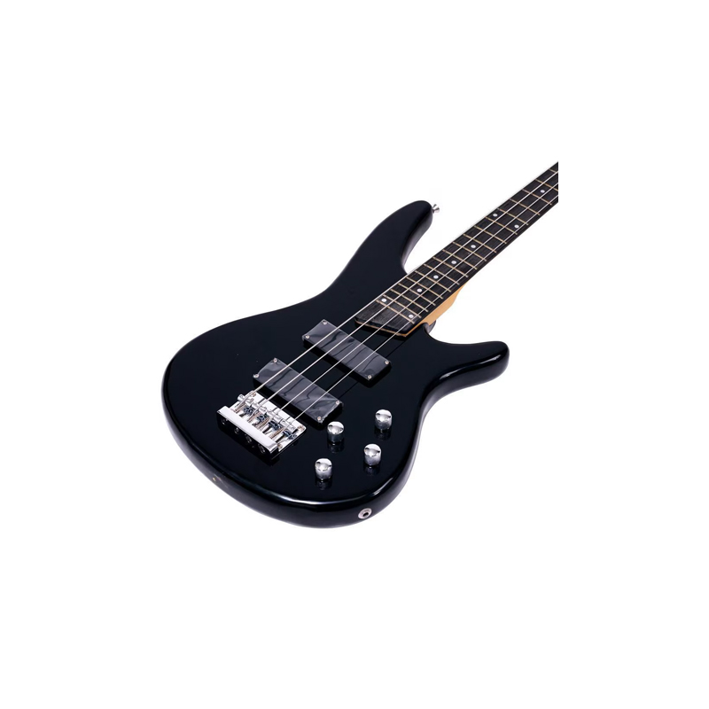 Con este bajo eléctrico serás la base rítmica y sonora de tu banda. Diseñado para ofrecer potencia y precisión, cuenta con cuerpo plano, cuello de tilo y diapasón de rosewood. Incorpora pastillas H-H, hardware cromado y acabado negro brillante. Incluye 24 trastes, puente resistente y funda para transportarlo fácilmente. Un instrumento sólido para músicos que quieren destacar desde el fondo.