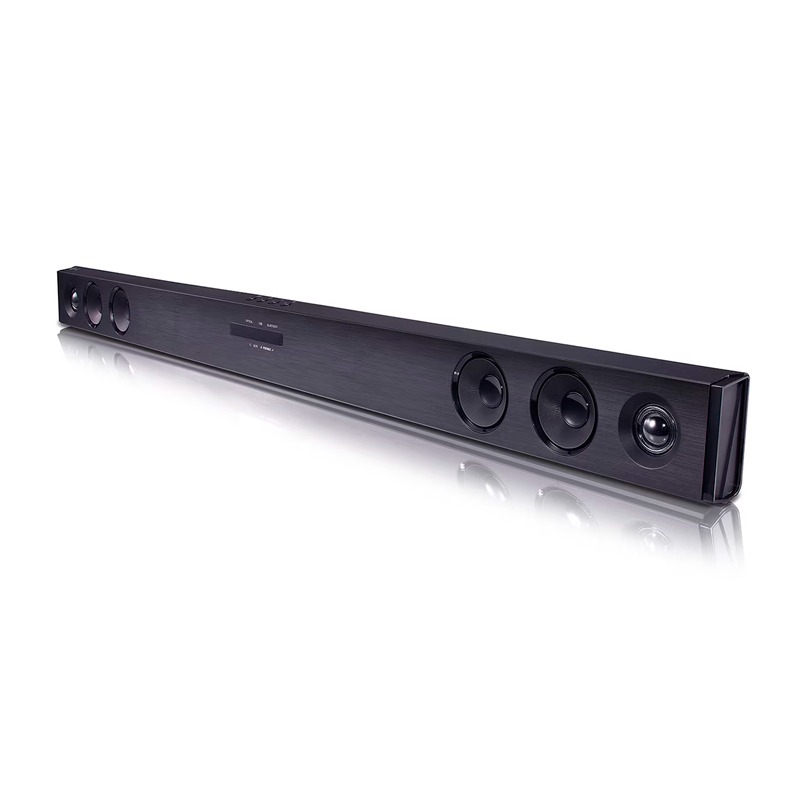 El Control Adaptable de Sonido analiza el contenido en tiempo real. Cuando ASC detecta que se está transmitiendo más “diálogos” se ajusta automáticamente para permitir que estos diálogos sean más claros. Y cuando detecta más acción eleva los sonidos bajos para obtener más impacto. El Procesador Automático de Sonido optimiza el audio en cada nivel de volumen, ofreciendo un balance de sonido correcto sin importar el volumen. Cuando la barra de sonido se encuentra en reposo, al momento de mandar la música vía Bluetooth automáticamente el sistema se enciende y comenzará la reproducción de la música.