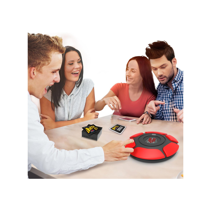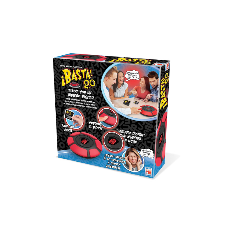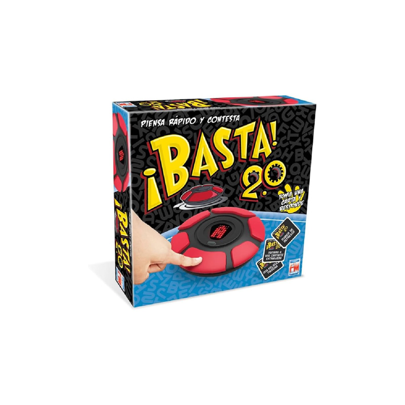 Basta Electrónico es el clásico juego de palabras reinventado con un tablero electrónico interactivo y dos modos de juego, ideal para grupos de 2 a 6 jugadores; tras seleccionar el número de participantes, el juego inicia automáticamente después de 6 segundos y se elige una carta con el concepto a responder, donde cada jugador cuenta con 10 segundos para contestar y presionar el botón rojo para detener el reloj, ya sea en el Modo 1, donde se debe pensar rápidamente una palabra que comience con la letra mostrada en el centro del tablero, la cual cambia hasta completar la ronda, o en el Modo 2, con letra aleatoria que cambia con cada jugador, ofreciendo partidas dinámicas, rápidas y llenas de diversión.