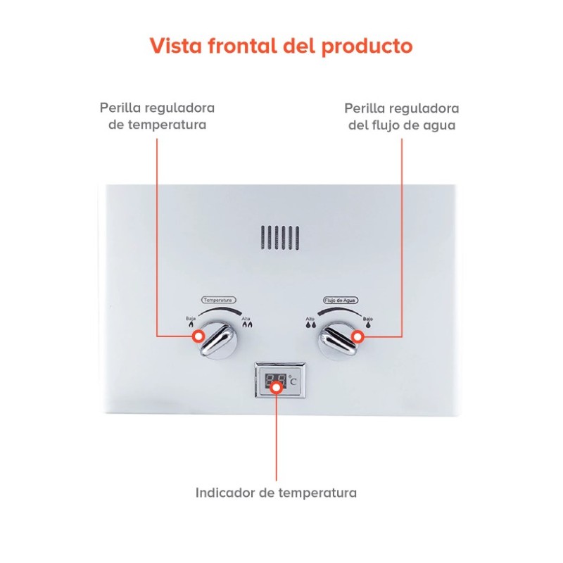 Disfruta de agua caliente en tan solo 34 segundos, gracias a su potente serpentín de cobre. Ajusta la temperatura con sus perillas reguladoras y visualízala en su pantalla digital, mientras sus características de seguridad avanzadas, como el detector de flama y el sensor de sobretemperatura, te brindan una protección total. Con el calentador de agua instantáneo de 6 litros, lleva la tecnología a tu hogar y disfruta de agua caliente al instante, con la máxima eficiencia y seguridad. Su sistema de encendido automático por pulsación continua, controlado por el flujo de agua, optimiza el consumo de gas, y es compatible con instalaciones de hasta 5 metros de distancia de la regadera.