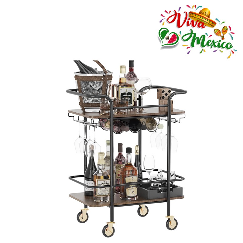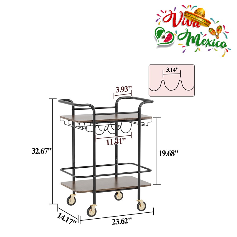 Uso multifuncional: el carrito de servicio de bar se puede utilizar en cualquier lugar como cocina, bar, comedor, sala de estar y fiesta. El carrito móvil también se puede utilizar como estante de panadería para cocina y mesa auxiliar para sala de estar para mantener tu habitación limpia y ordenada