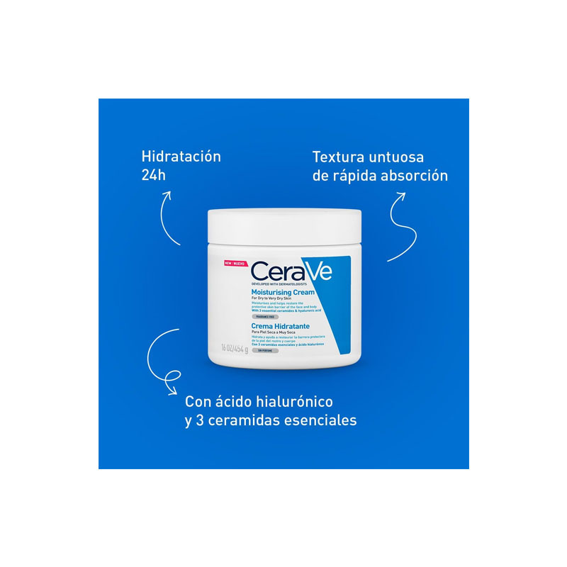 Cerave Crema Hidratante Diaria De Rostro Y Cuerpo Para Piel Seca 454Gr