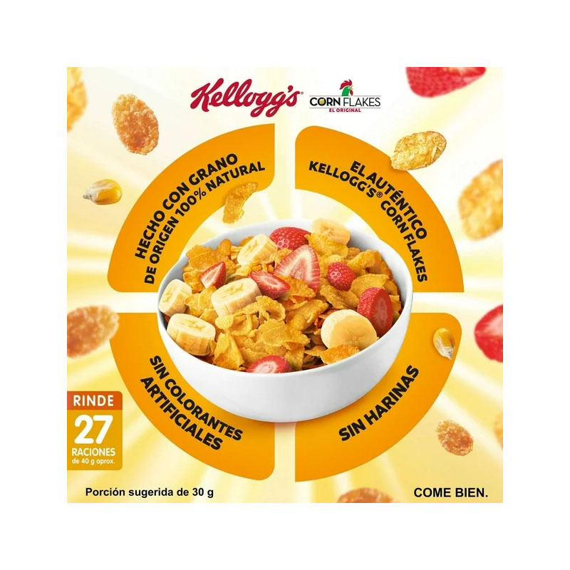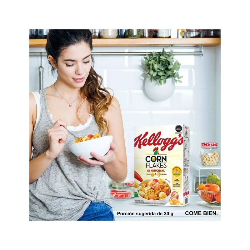 Inicia las mañanas en casa con Corn Flakes de Kelloggs y dale a tu familia una opción para complementar el desayuno, por su versatilidad puedes combinarlo con leche y fruta o usarlo para realizar diferentes recetas de cocina. Es un básico que no puede faltar en la alacena.