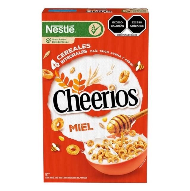 Con aritos de 4 cereales integrales: maíz, trigo, arroz y avena