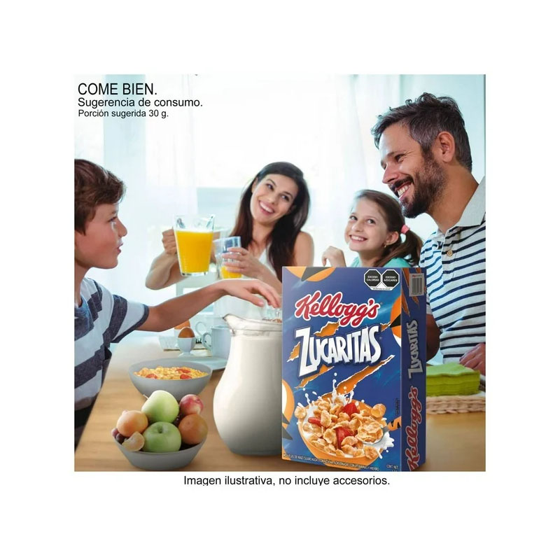 Haz que tus hijos saquen el tigre que hay en ellos con Zucaritas de cereales Kellogg’s; hecho con granos de maíz de origen natural, adicionado con hierro y ácido fólico. Cereal Zucaritas es el cereal para niños ideal como complemento en su lunch o snack, haciéndolo divertido y delicioso. Combina su desayuno con leche y fruta, sirve estas crujientes hojuelas como topping en gelatinas, fruta o helados.