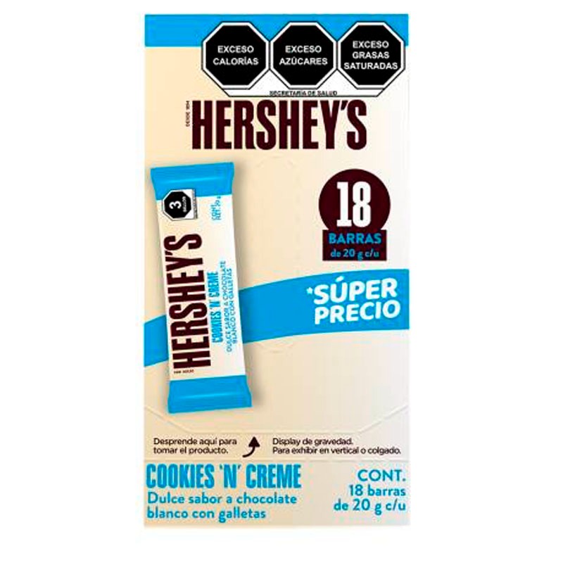 Chocolate Hersheys Cookies N Creme 18 pzas de 20 g