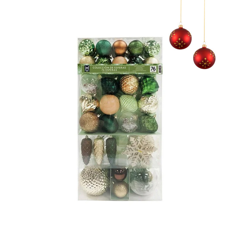 Transforma tu árbol en un reflejo de estilo y elegancia con este set de 76 esferas navideñas. Su paleta de colores moderna, inspirada en las últimas tendencias, y sus formas únicas añaden un toque sofisticado y lleno de personalidad a cualquier decoración. Cada esfera incluye ganchos para una colocación rápida y sencilla, ofreciendo practicidad sin sacrificar el diseño. Perfecto para quienes buscan una Navidad con estilo, armonía y un brillo especial en cada rincón del hogar.