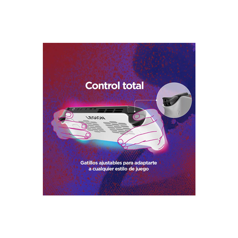 Equipada con el procesador AMD Z2 Go y arquitectura Zen 3, la Legion Go S ofrece una experiencia de juego fluida con 4 núcleos y 8 hilos. Disfruta de gráficos en 1080p con AMD Radeon 800M y tecnologías avanzadas como Radeon Super Resolution, FSR y AFMF para imágenes más nítidas y mayor rendimiento.