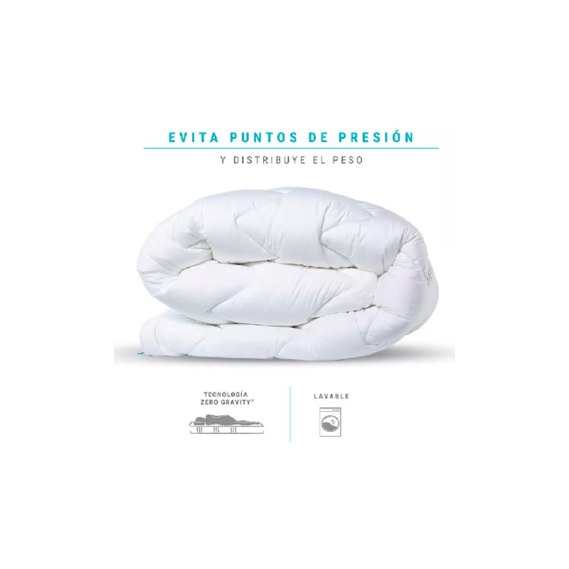 Distribuye el peso y evita puntos de presión. Puede lavarse y secarse en máquina