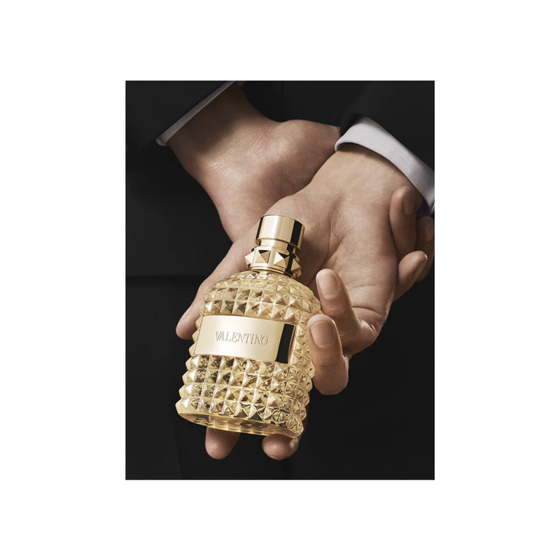 Born in Roma “The Gold” viste a la icónica botella rockstud de dorado vibrante.”