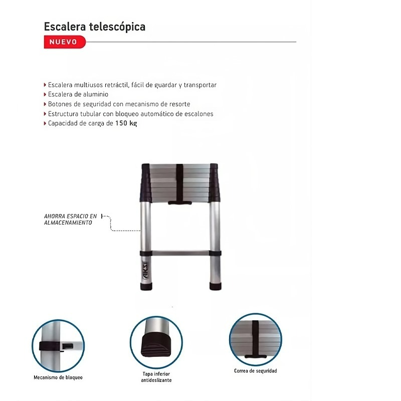 “Escalera multiusos retráctil, fácil de guardar y transportar.