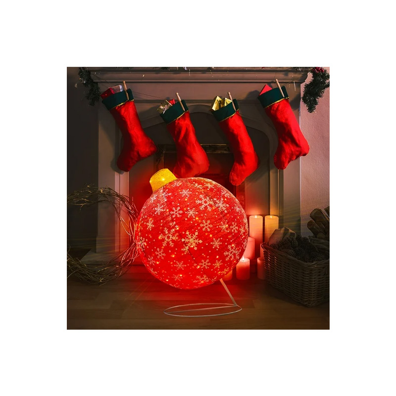 Esfera Gigante Navideña Roja De Tela Cn Luces Led 77cm Base Metal