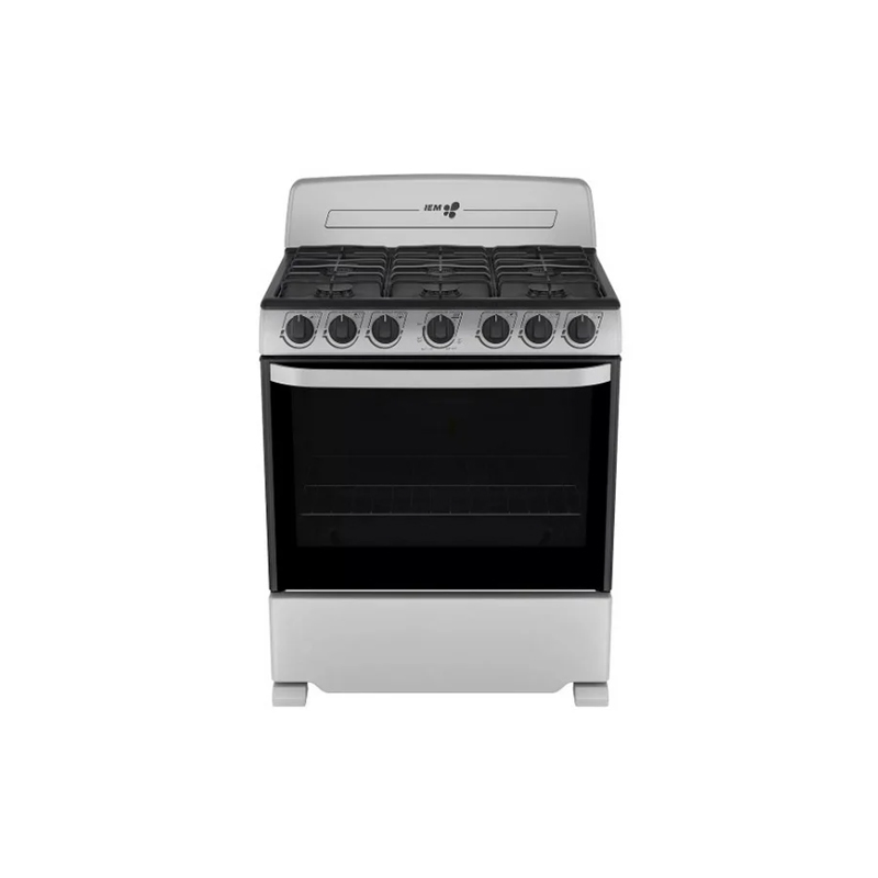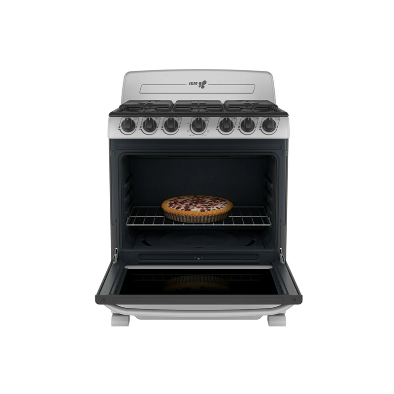 Parrillas Negro Brillante, más resistentes y durables tipo fundición, con un acabado mate más atractivo. Perfect Cook, diseño circular en piso del horno que distribuye mejor el calor en toda la cavidad. Estufa de Piso 76 cm (30 pulgadas) Plata Mercury IEM.