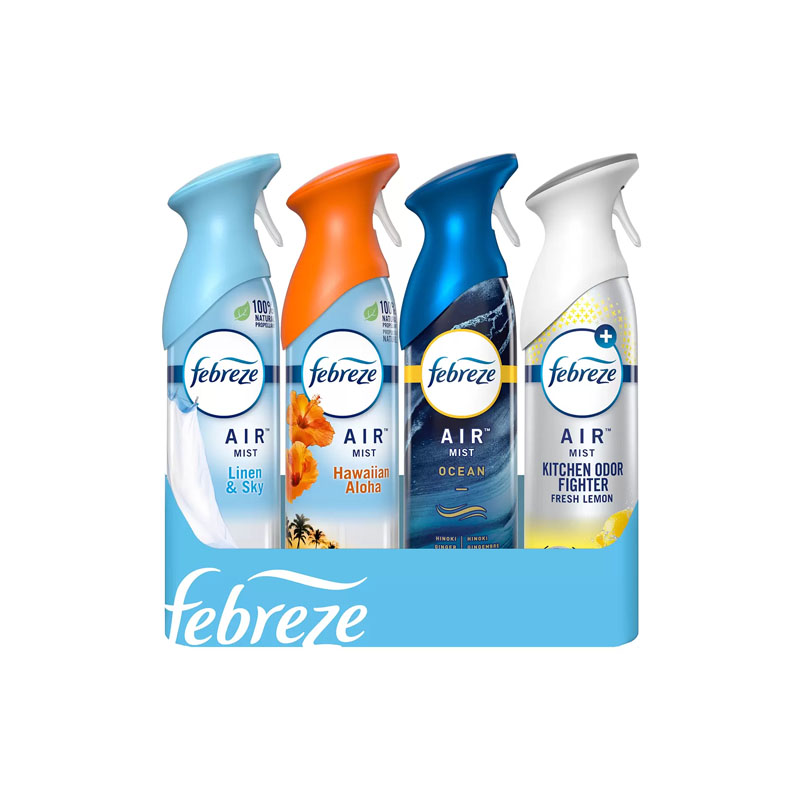 En ese pack especial llevarás a tu casa los aromas de Linen y Sky, Hawaiian Aloha, Kitchen Odor Eliminator y Ocean Mist, ideales para dejar tu casa con un perfume ligero y fresco.
