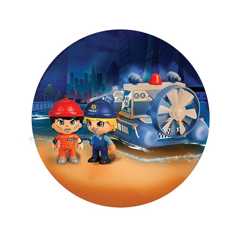 Incluye una lancha y una figura pinypon action policía con los accesorios ideales para las mejores aventuras policiales.