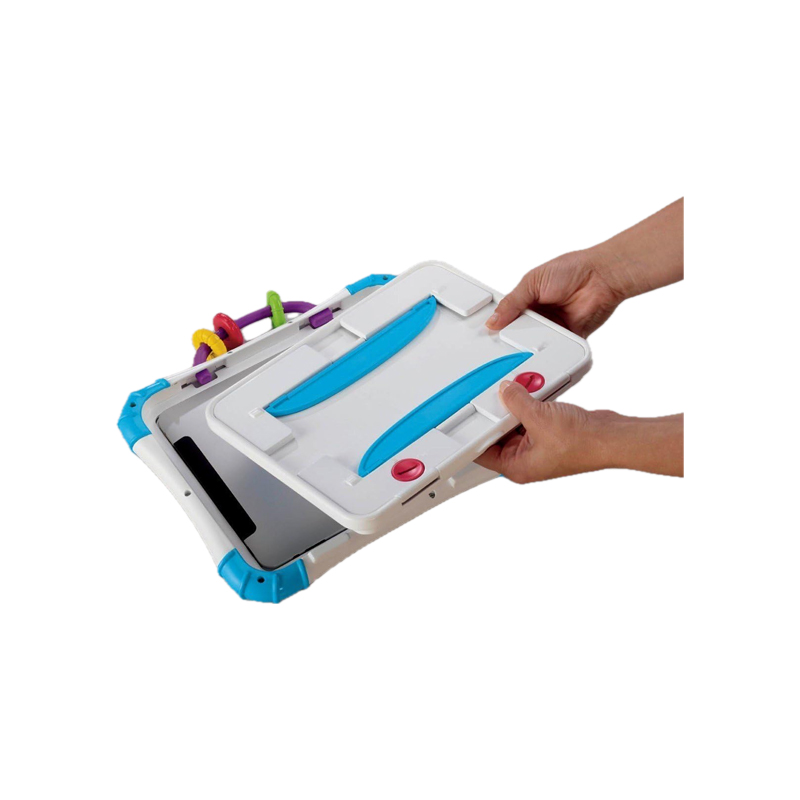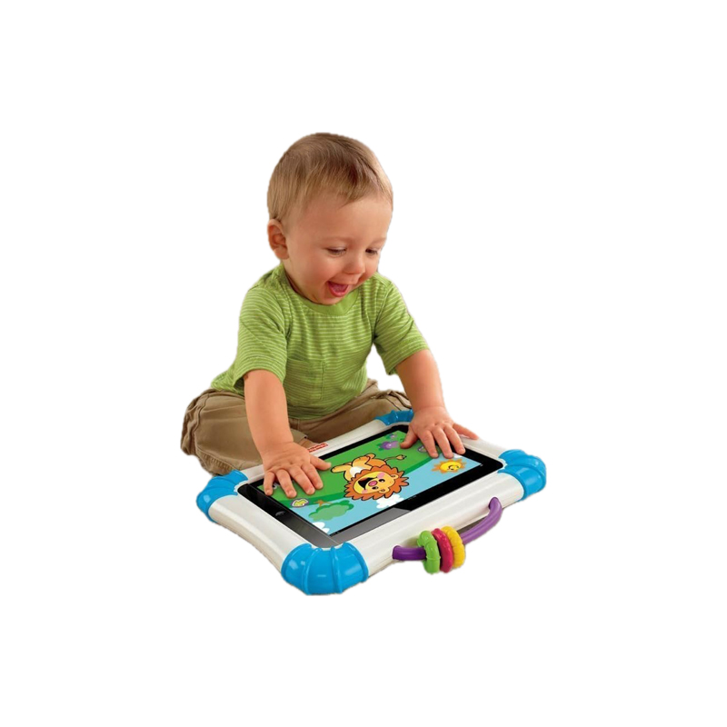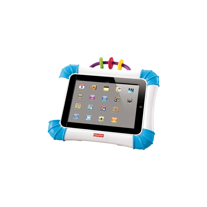 La funda Fisher Price Laugh and Learn para dispositivos iPad permite que el bebé disfrute de la tecnología de forma segura y divertida con una funda protectora diseñada especialmente para sus manos y con aplicaciones adecuadas para su edad, solo coloca el iPad dentro de la funda gira las cerraduras y activa la función de bloqueo para proteger el dispositivo de goteos y babas sin limitar la experiencia de juego, ofrece la opción de bloquear o permitir el acceso al botón de inicio según se prefiera e incorpora un mango texturizado con cuentas tipo sonajero que fomentan el juego tradicional, su diseño versátil permite tres formas de uso ya sea plana en modo caballete o como base tipo roly poli para mayor interacción, es compatible con iPad 1 y iPad 2 y permite descargar aplicaciones gratuitas de aprendizaje de Fisher Price para que el bebé juegue aprenda y controle la acción mientras el dispositivo permanece protegido.