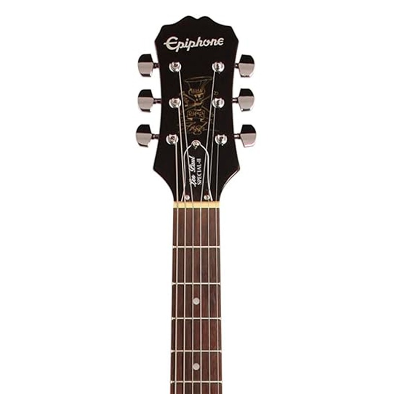 La guitarra Les Paul «AFD» Special-II está equipada con las nuevas pastillas Ceramic Plus Hum Bucking con una tapa de arce flameado AAA y un fondo de caoba cereza. La Slash Les Paul Special-II tiene un cuerpo encuadernado con un anillo de captación Shadow incorporado. Este atuendo también viene con una bolsa personalizada con el logotipo de Snake Pit y selecciones de texto exclusivas de Dunlop To de Slash. Epiphone también ofrece las premiadas clases en línea de e-Media y una correa y un cable para guitarra.