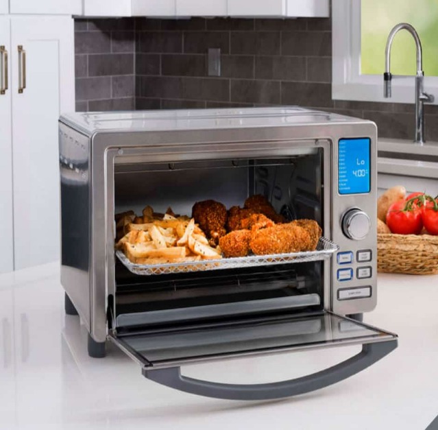 Disfrute de comidas saludables y deliciosas usando el horno freidor de aire digital de Gourmia. – Nuestra tecnología patentada Fry Force 360° cocinas los alimentos de forma rápida y uniforme con poco o nada de aceite. -Use controles digitales de ajuste fácil para establecer el tiempo, la temperatura y el nivel de tostado. – Este horno freidor de aire se distingue por tener una ventana de visualización grande, 3 posiciones para la rejilla y un diseño compacto. Incluye una cesta para freír , una rejilla para horno, una bandeja para hornear y una bandeja apta para migas aptas para el lavavajillas. – 14 Funciones de cocción de un toque: freir con aire, tostar, hacer pan, pizza, hornear, hervir, asar, recalentar, calentar, hacer galletas, levar, cocinar a fuego lento, convección y deshidratar.