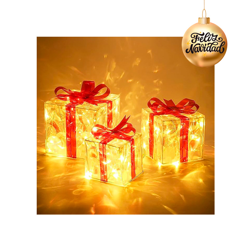 Juego de 3 Cajas de Regalo Decorativas Iluminadas
