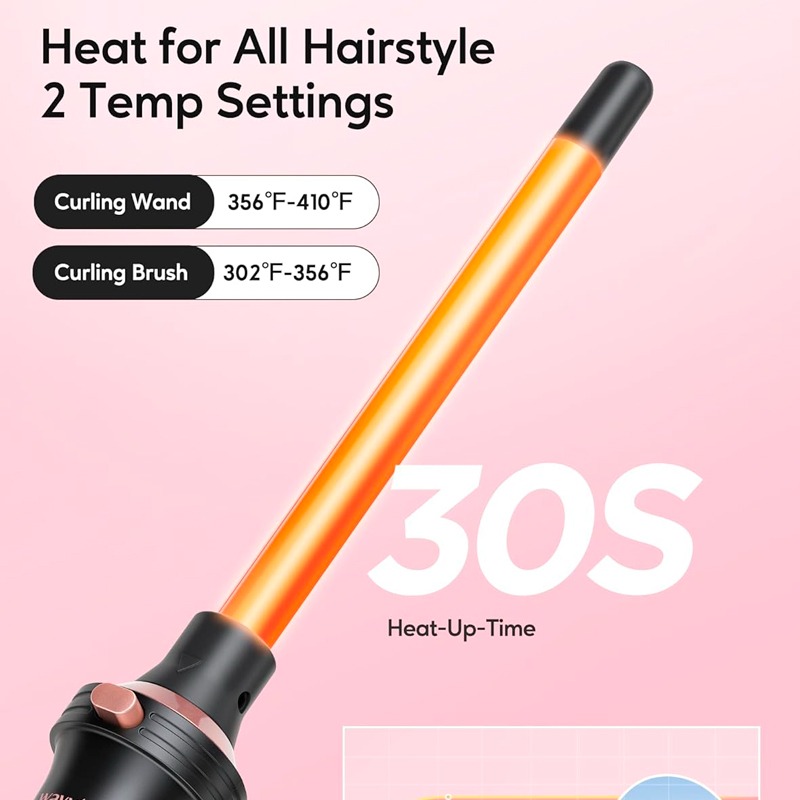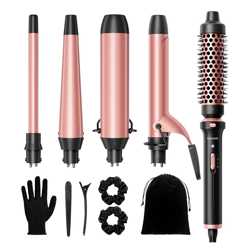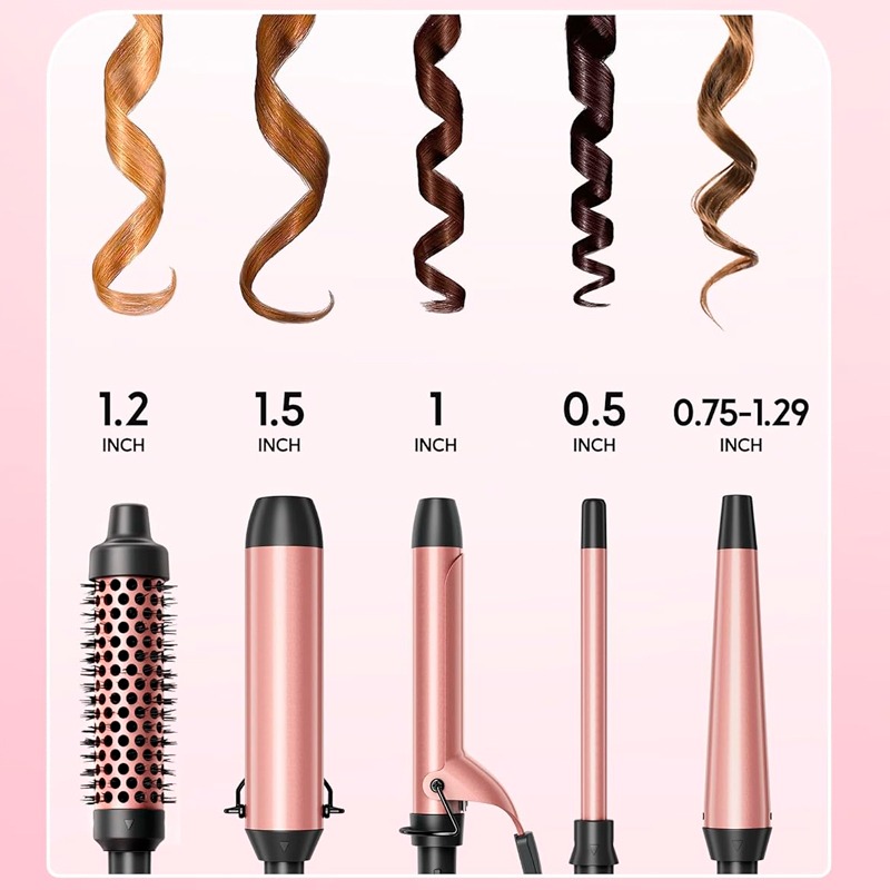 Obtén diferentes rizos hermosos con juego de varitas rizadoras 5 en 1: el nuevo juego de varitas rizadoras Wavytalk contiene 4 tamaños diferentes de barriles de cerámica intercambiables (barril de 0.5 pulgadas, barril cónico de 0.75 a 1.3 pulgadas, barril de 1.5 pulgadas) con un cepillo para polvo rizador, lo que te permite hacer varios peinados como rizos pequeños o medianos. curcurcurllllly rizos sueltos.