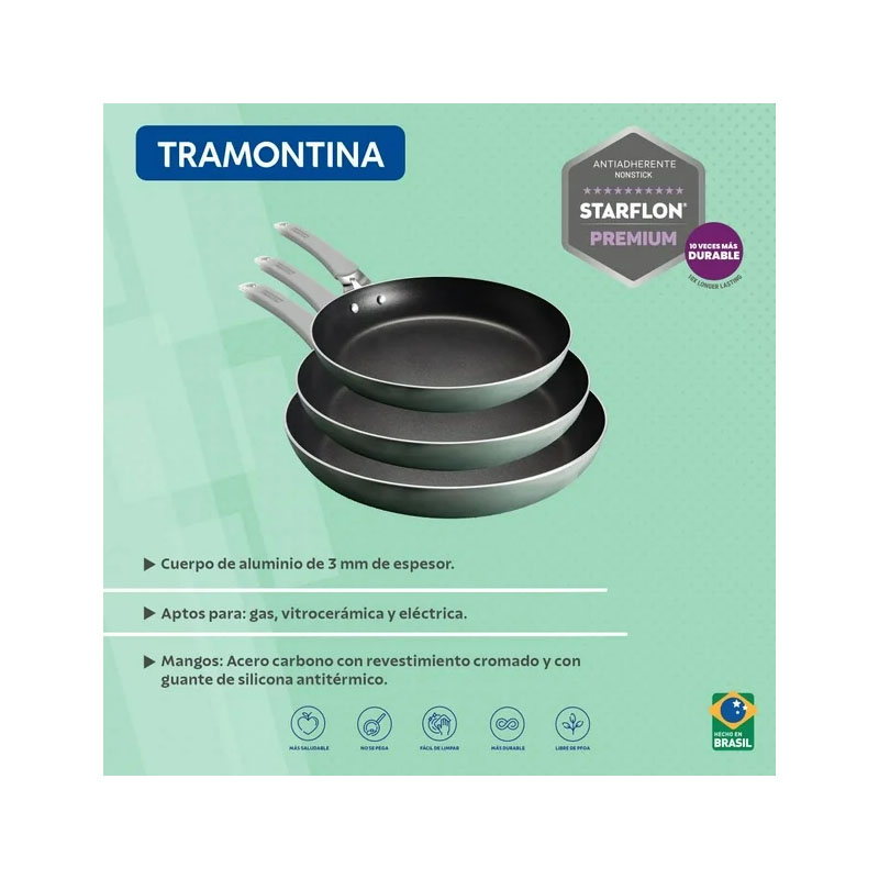 Juego de Sartenes Tramontina Brio Verde 3 pzas