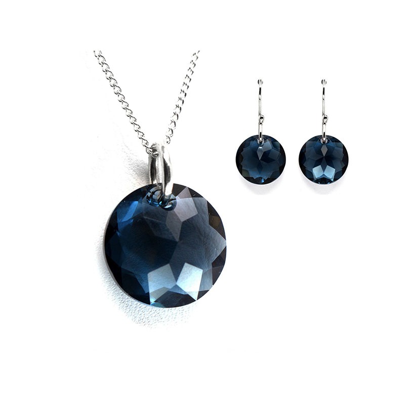 Juego Zvezda, collar y aretes corte Classic color Montana, cadena plata .925