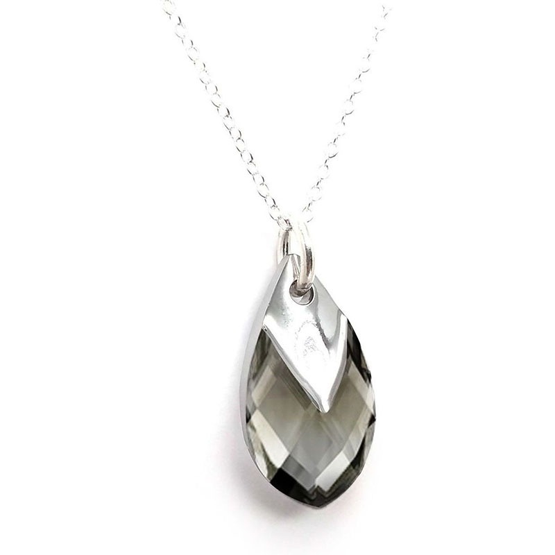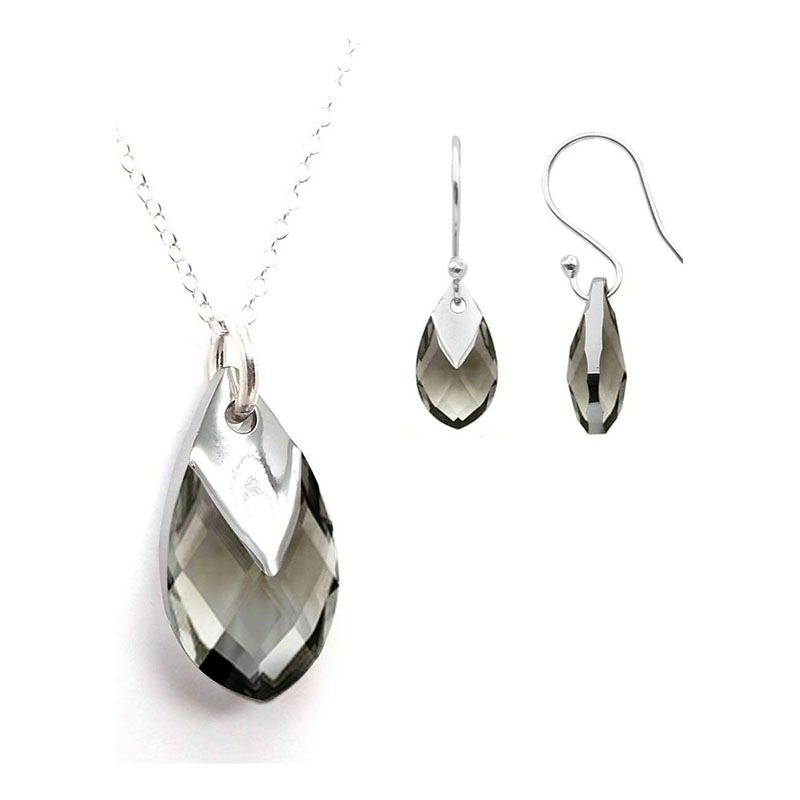 Juego Zvezda, collar y aretes corte Pear Shaped color Black Diamond, cadena plata .925
