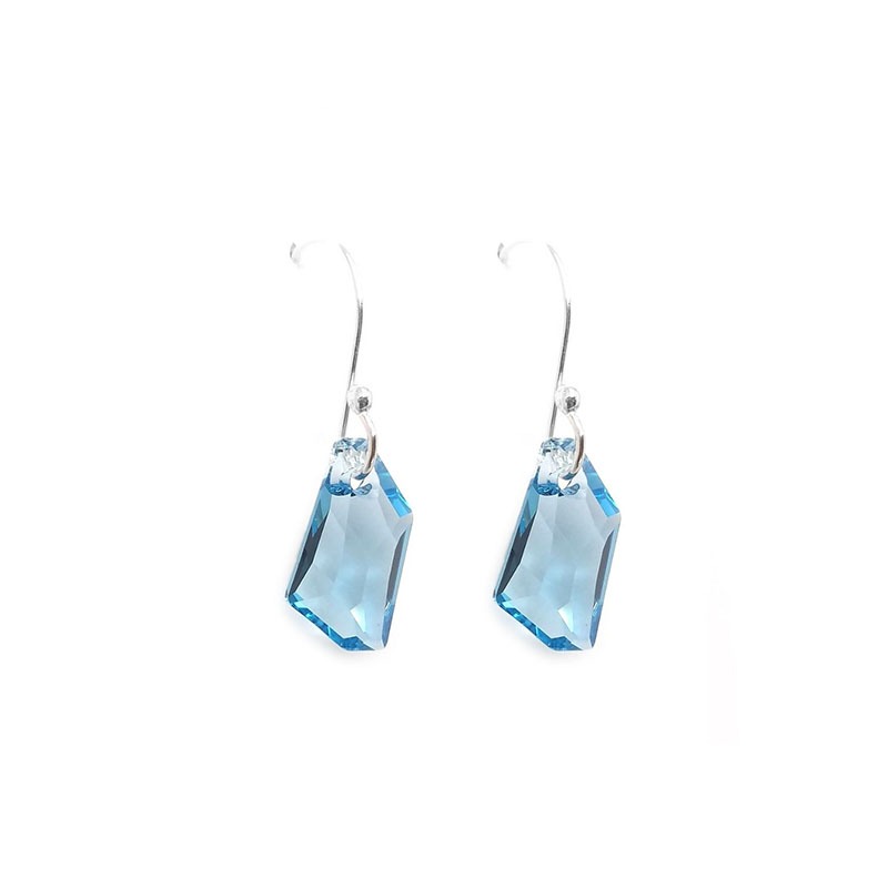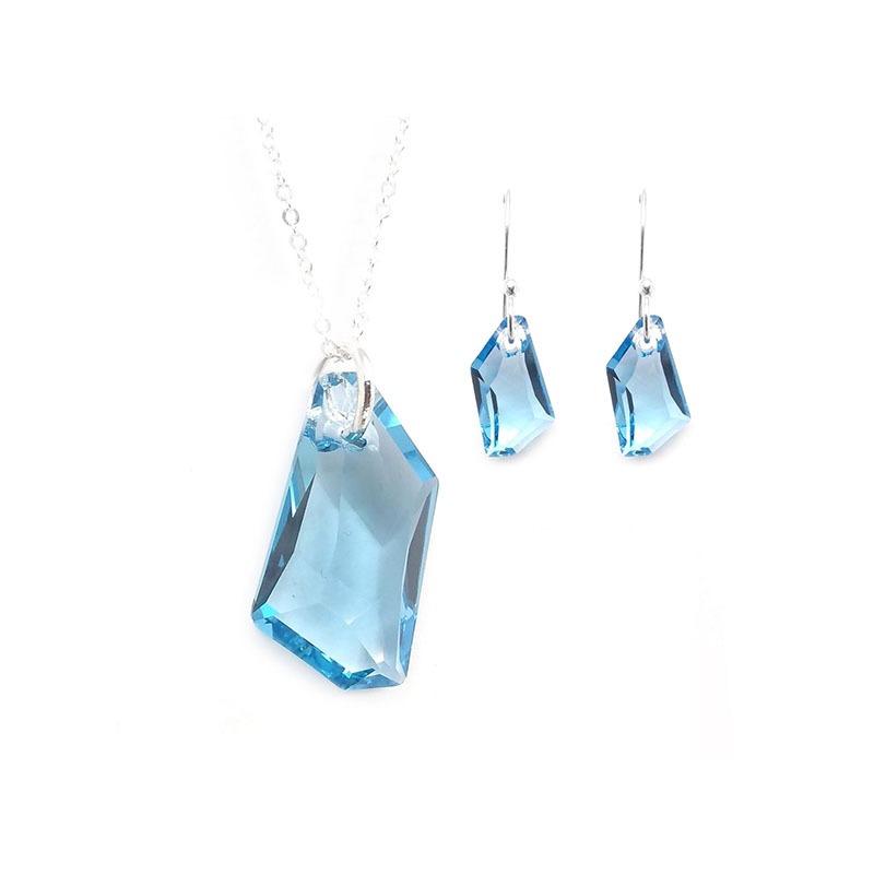 Juego Zvezda, collar y aretes corte De-Art color Aquamarine, cadena plata .925
