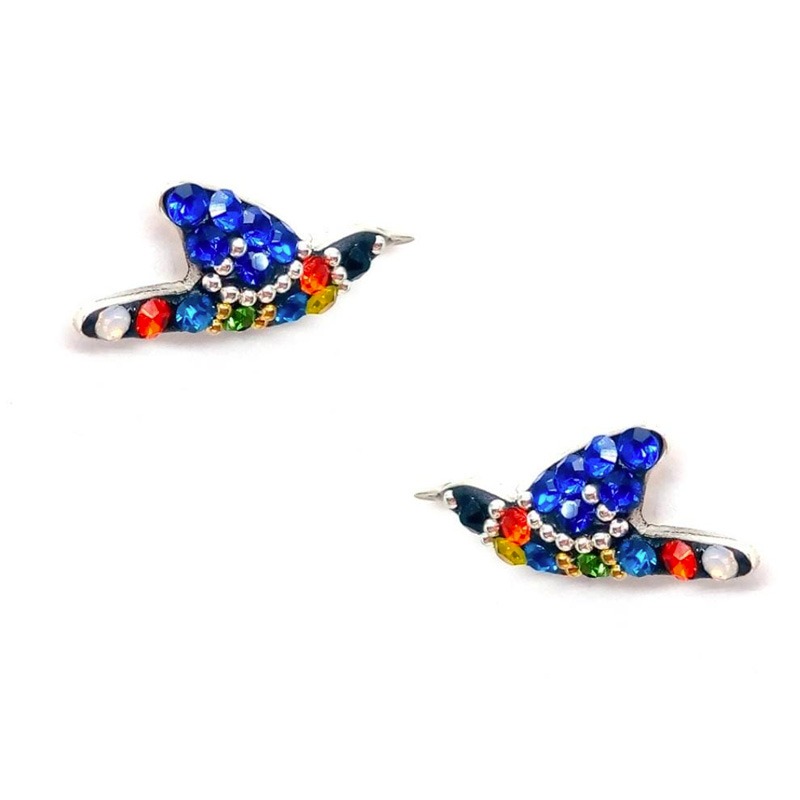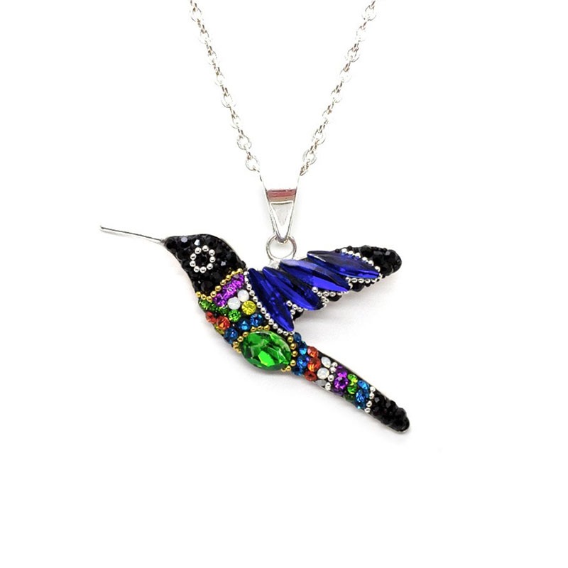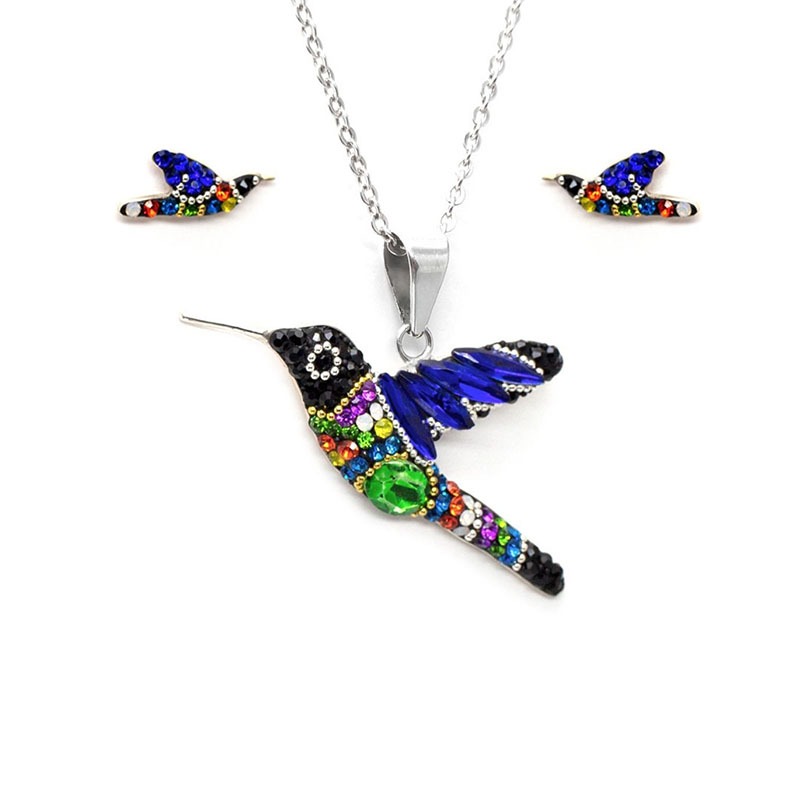 Juego Zvezda, collar y aretes corte Colibrí Multicolor, cadena plata .925