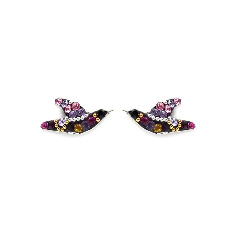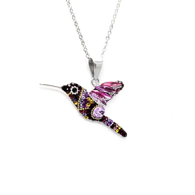 Juego Zvezda, collar y aretes corte Colibrí color Negro/Rosa, cadena plata .925