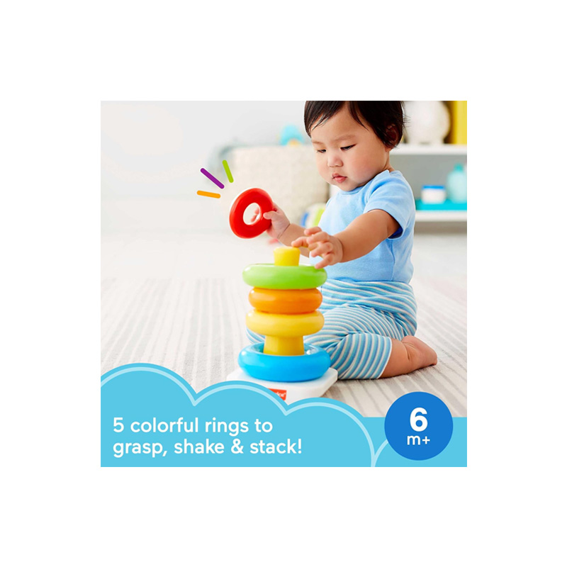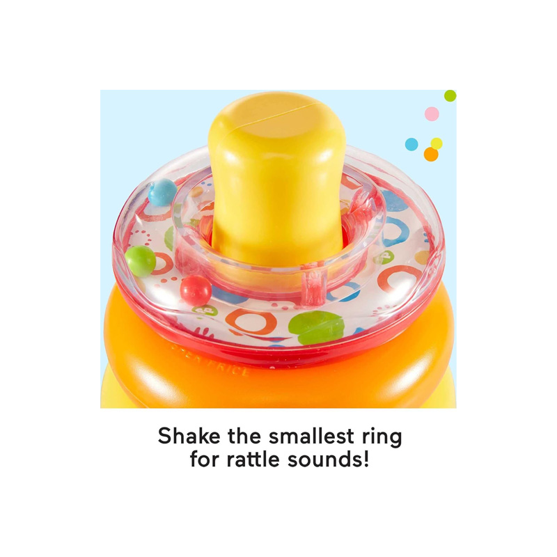 Ayuda a desarrollar habilidades motoras finas y gruesas mientras el bebé agarra, agita y apila los anillos