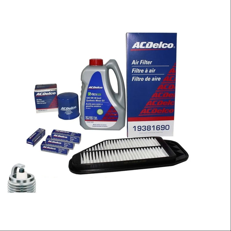 Incluye 4 bujías , filtro para aire, filtro para aceite y 3.78 litros de aceite sintético 5w-30, clasificación Dexos.