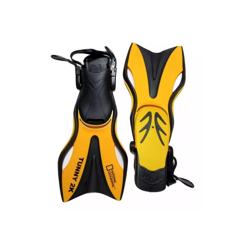 1. Un par de aletas de talón abierto ajustable, se puede usar con o sin protección, diseño en la planta texturizada del pie para evitar resbalones, plantilla para empeine, bolsillos suaves y cómodos para los pies.