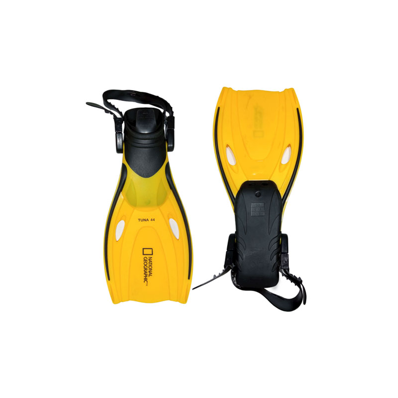 3. Un par de aletas con diseño en la planta del pie texturizada para evitar resbalones, plantilla para empeine, bolsillos suaves y cómodos para los pies, talón abierto ajustable, sistema RQL ™ (Ratchet Quick Lock) utilizado en el talón abierto ajustable y correas de aletas reemplazables. Se puede usar con o sin protección adicional para los pies.