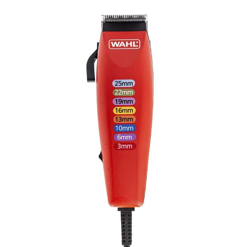 Cortadora de cortes múltiples, protector de cuchilla, estuche de almacenamiento duradero, Peine para peinar, tijeras, cepillo de limpieza, aceite para cuchillas, Diez peines guía codificados en colores de acuerdo a su medida para su fácil identificación, Cono de oreja izquierda, Cono de oreja derecha, instrucciones/Guía de estilo en inglés y español a todo color, Protectores de accesorios codificados por colores fáciles de combinar, Las cuchillas autoafilables permanecen afiladas por más tiempo, Potente motor con palanca cónica ajustable, Se incluyen sencillas instrucciones en color paso a paso, 2 años de garantía