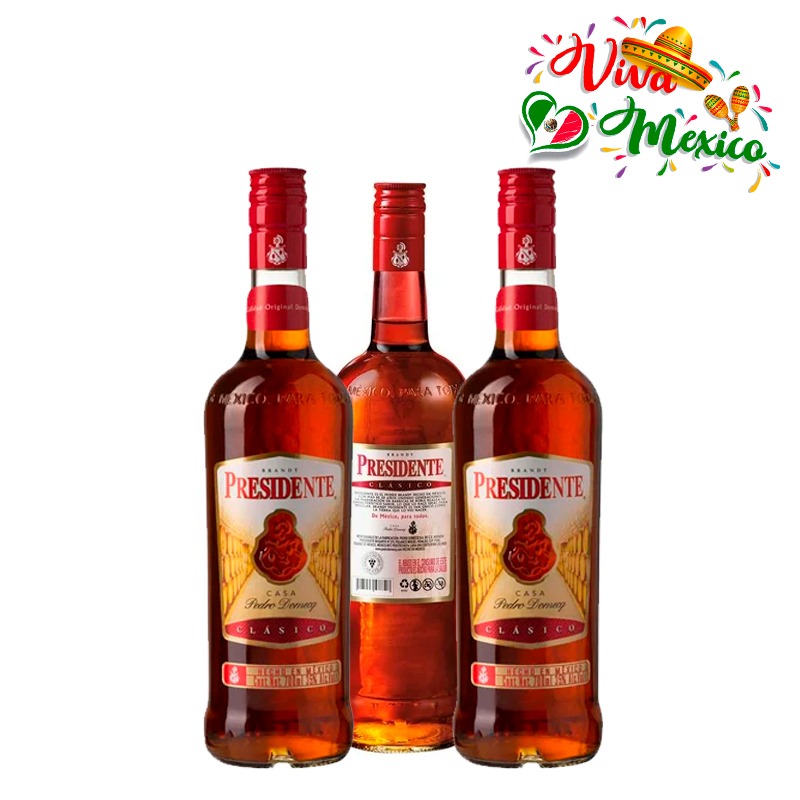 Kit de 3 botellas de Brandy Presidente Clásico 900 ml