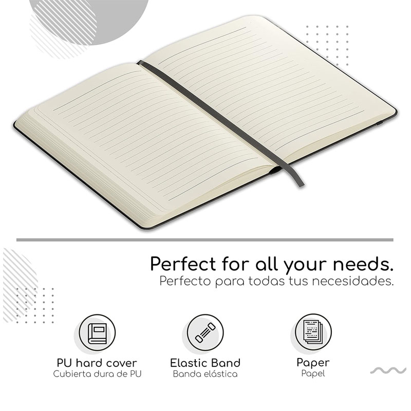 Perfecta para todas tus necesidades! Tu Libreta de notas se mantendrá firmemente cerrada gracias a su resistente resorte que actúa como seguro para proteger tus hojas de raya! Además, cuenta con un compartimiento para guardar Notas Adhesivas o Tarjetas!