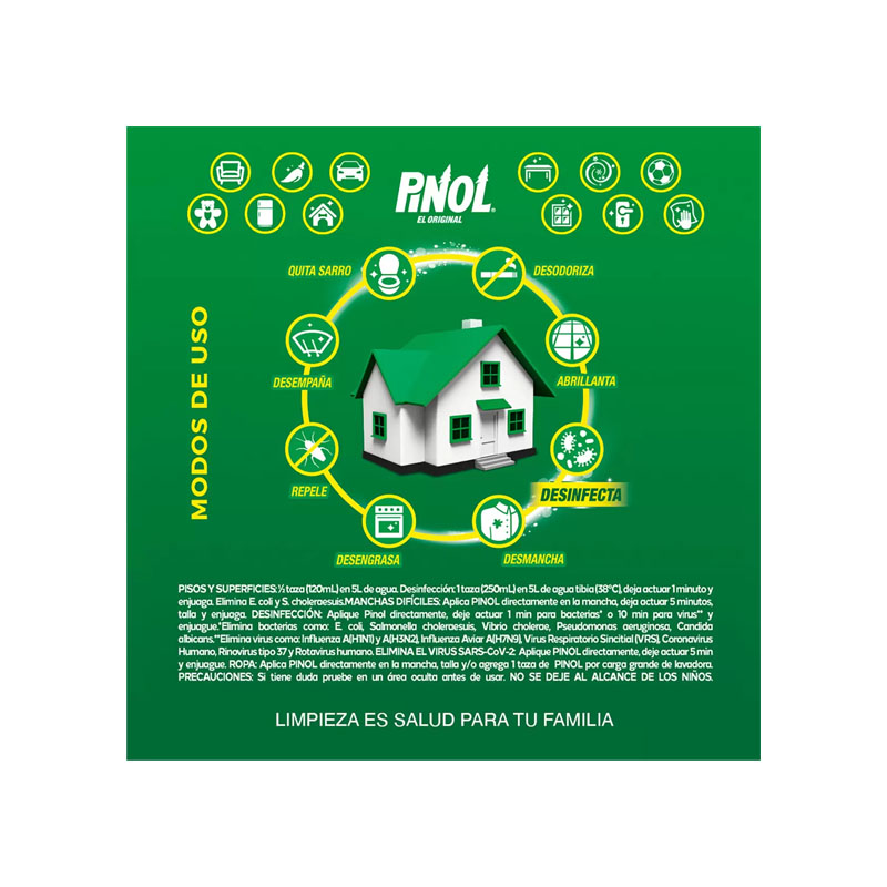 Limpiador multiusos hecho a base de aceite de pino. Su poderosa fórmula de origen natural te ayudará no solo a eliminar la suciedad, sino también a desmanchar y desengrasar los lugares más difíciles.