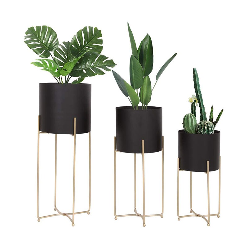 Juego completo y sin montaje. Las 3 macetas de pie vienen con soportes de metal para plantas. No requiere montaje. Solo tienes que abrir el soporte y poner las macetas de metal negro en él. Diseño moderno y minimalista: el elegante soporte para macetas refleja el minimalismo inspirado en el estilo clásico de mediados de siglo. Se adaptan bien a la mayoría de la decoración del hogar y muebles, se pueden combinar con una variedad de plantas y flores en jarrones. El diseño de mediados de siglo añade un toque de clase a cualquier habitación, balcón, ventana, patio o jardín.