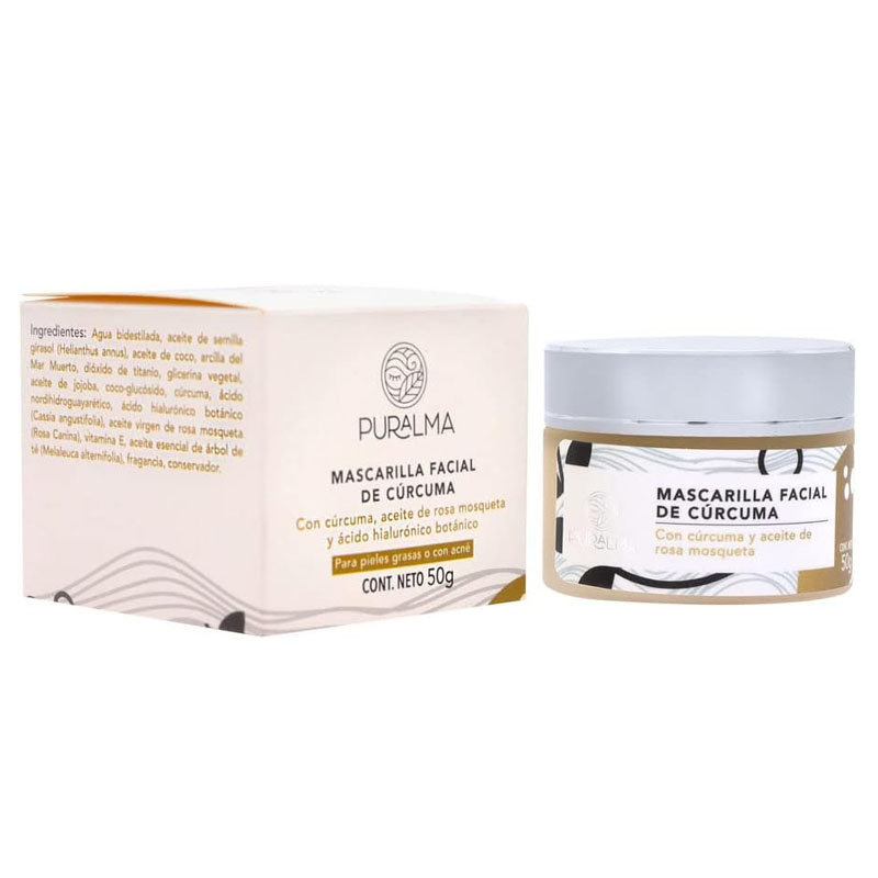 Base de ácido hialurónico y cúrcuma para piel grasa o con acné. Con arcilla facial y gel hidratante facial natural, 50grs.