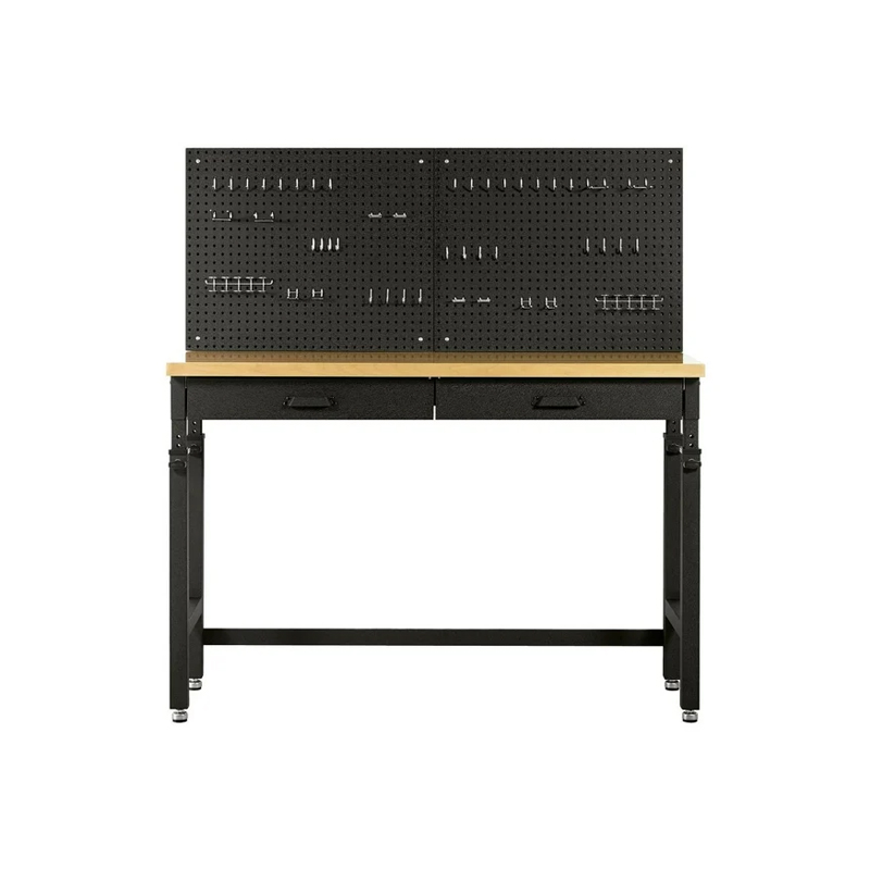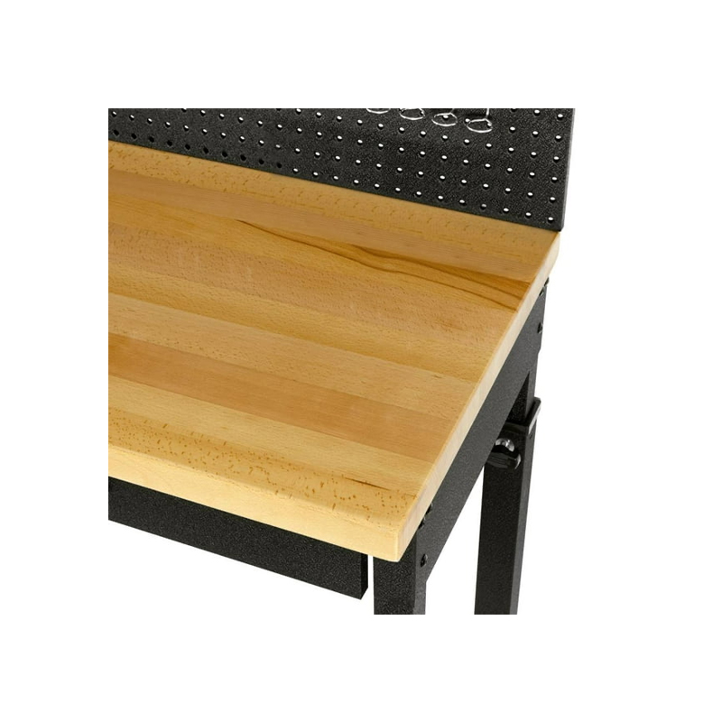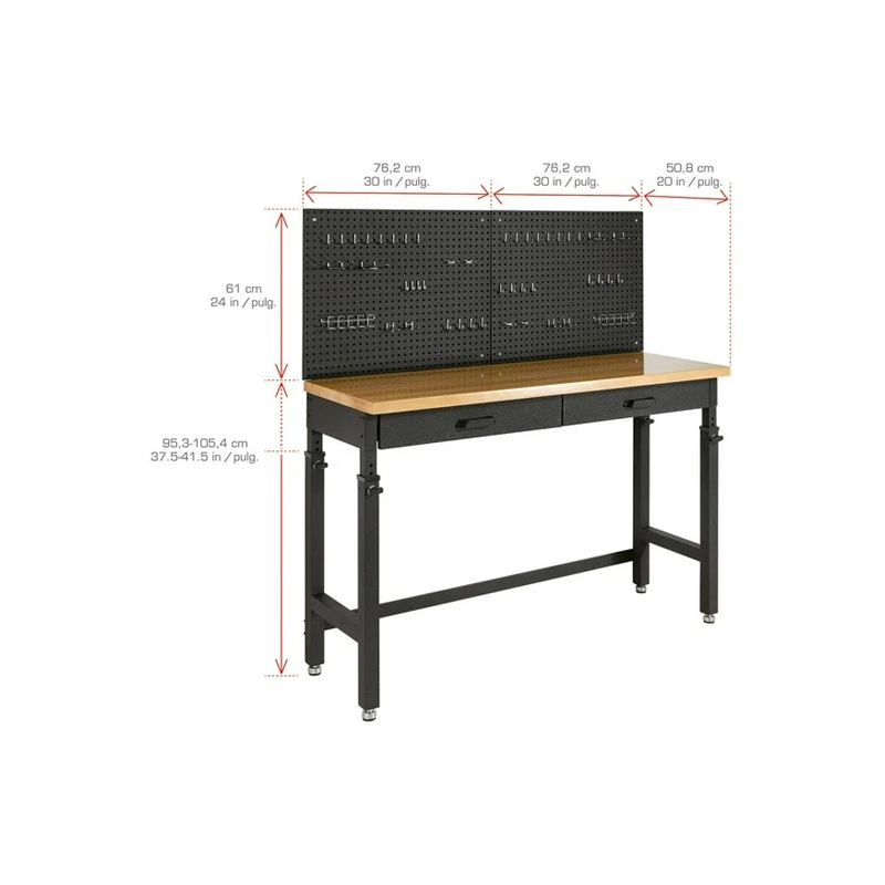 Diseñada para ofrecer practicidad y organización en el espacio de trabajo. Cuenta con patas telescópicas que permiten ajustar la altura manualmente (con ayuda de dos personas), asegurándola con perillas de bloqueo. Su superficie es de madera maciza con acabado resistente a los arañazos, ideal para trabajos pesados y de precisión.