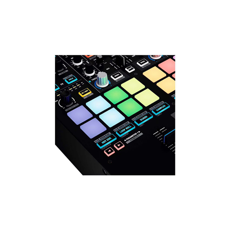 Diseñada en colaboración con DJs profesionales, esta mezcladora cuenta con 16 pads RGB sensibles a la velocidad, doble interfaz de audio USB 2.0 de 24 bits, Innofader Pro sin contacto, 2 pantallas OLED con información en tiempo real, efectos Tweack FX codificados por color y 3 slots de efectos asignables.